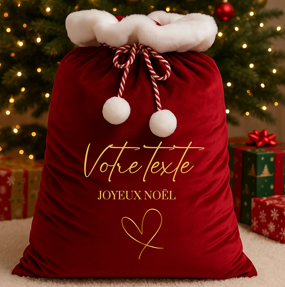Découvrez nos hottes de Noël personnalisées et chaussettes de Noël uniques pour toute la famille ! Offrez un cadeau sur mesure, rempli d’amour et d’émotion : tabliers, sacs en jute, mugs et accessoires personnalisés. Faites de Noël un moment magique avec des cadeaux originaux et inoubliables à glisser sous le sapin